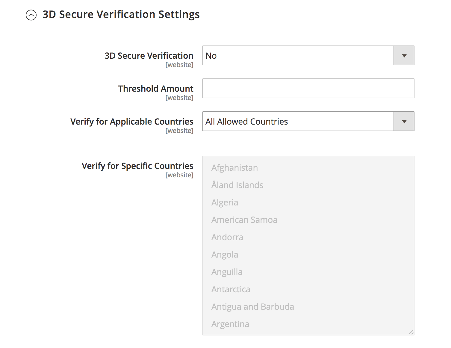 - Select the countries for 3D verification from Verify for Applicable Countries as shown in the screenshot below.